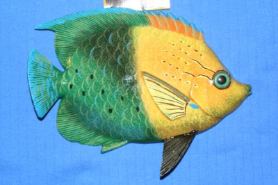 THESE ARE BRAND NEW 8" TROPICAL FISH TO HANG ON THE WALL, THEY ARE 3 DIMENSIONAL ON THE FRONT (PROTRUDING LESS THAN 1 INCH) FROM WALL AND THE BACK HAS A RECESSED HANGER SO IT HANGS FLUSH.