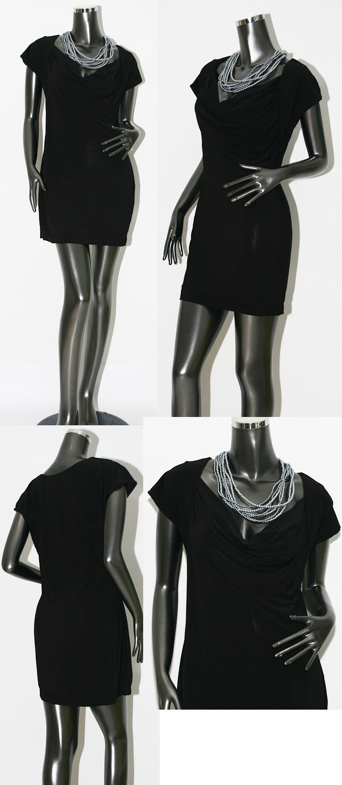 Black Cowled neck cap sleeve mini dress M L US 6 8 10