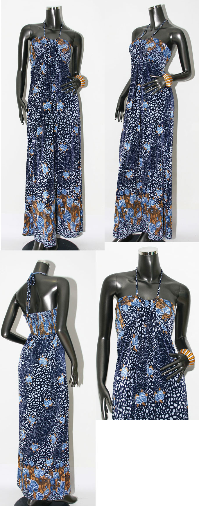 Blue women Floral halter casual maxi dress M/L US 6-10