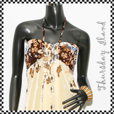 Cute Ivory Floral halter gown maxi dress S M US 2 4 6 8