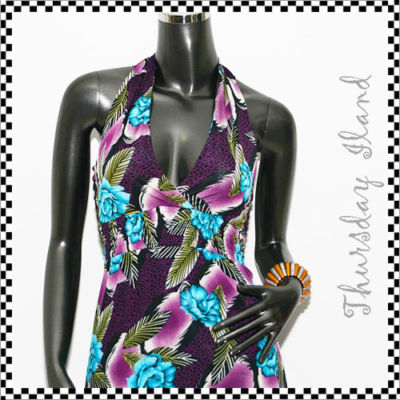 Floral Violet halter beach gown maxi dress M L US 6-10