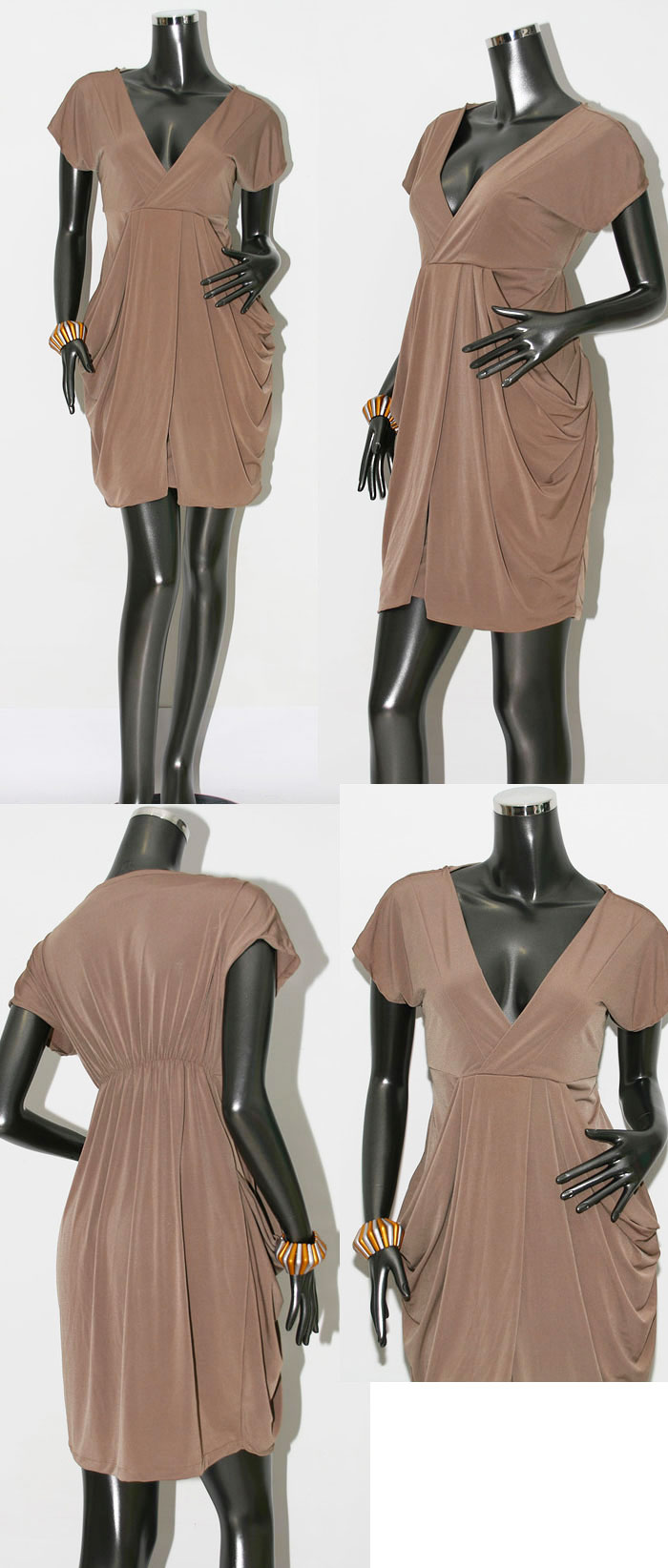 New cowl side overlay V neck mini dress M L US 6 8 10