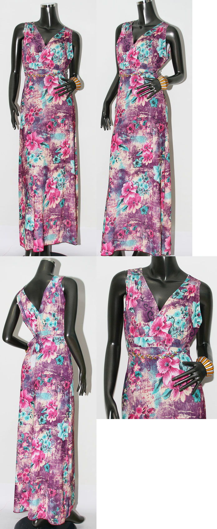 Vintage floral sleeveless beach long maxi dress