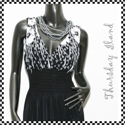 Simple Floral black casual long maxi dress S M US 2-8