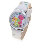 Lovely Barney Style Dial Leather Quartz Watch with Numerals Hour Marks for Children - White