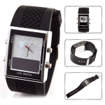 High Quality Male Rectangle Dial Rubber Quartz Wrist Watch Conan Logo with Strip Hour Marks - Black