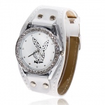 Style Diamond Hour Marks Wrist Watch with Black Leather Watchband