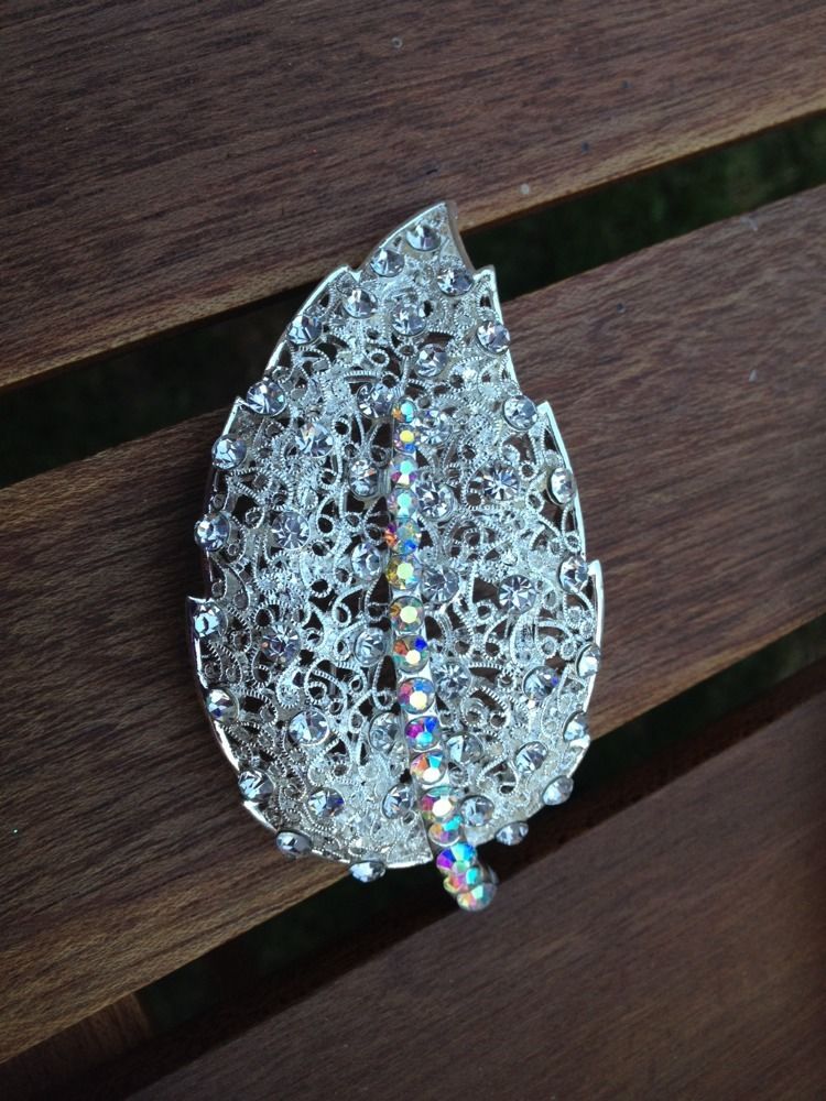 Wedding & Flower Craft Leaf shaped Brooch decorated with iridescent Diamante's