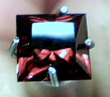 A Lustrous Rich Red zircon from the New England district(Yarrow river,Glen Innes) renowned for its fine zircons.Zircons(white) are used in the trade as diamond simulants due to their high refractive index giving the fire and brilliance of a diamond and in this case the rich red of a Burmese ruby in the one stone.The stone is Eyeclean and has a very,very small crystal inclusion almost flawless.Th stone has been cut in the correct angles for this material giving it maximum colour and brilliance.Each facet has been polished to perfection with highgrade diamond polish.