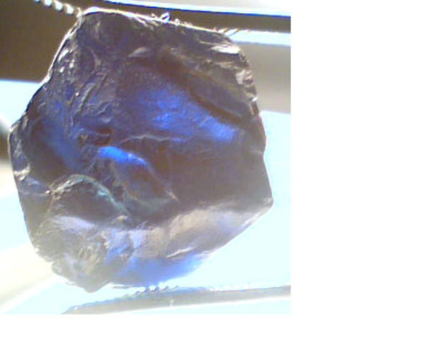 This is a natural piece of CLEAN sapphire from Fraser creek,Inverell,NSW renowned Australia wide for some of the best Australian Fine Blue sapphire.With the main(table) colour/s being a Fine vivid mid blue and the side table being a nice very light teal blue.Should cut a nice BRIGHT stone as the side table is light coloured! The surface of the stone has pits and cracks which will be removed in the usual preforming process.Excellent shape.Dark areas are shadows and are the same colour as the blue areas.The stone has a surface crack(see 3rd photo next to the dimple in the bottom center of the stone) which is about 2mm deep and 5mm long and should be removed in the preforming process.