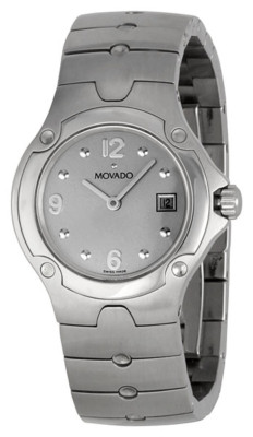 Stainless steel case with a stainless steel bracelet. Fixed bezel. Mirror dial. Quartz movement. Scratch resistant scratch resistant sapphire crystal. Case diameter: 26mm. Hidden deployment clasp. Water resistant at 50 meters / 165 feet. Movado Sport Edition Ladies Watch 0604599. | |