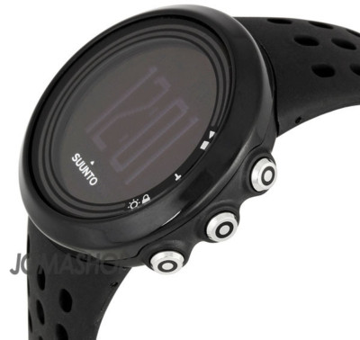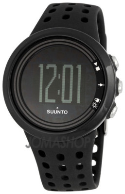 Plastic case with a black polyurethane bracelet. Fixed bezel. Digital dial. Day-date-month-and year. Quartz movement. Scratch resistant acrylic crystal. Case diameter: 32 mm. Case thickness: 13 mm. Tang clasp. Water resistant at 30 meters/ 100 feet. Functions: hours, minutes, seconds, alarm, day of the week, start-up fitness test (to determine you fitness level) exercise plan, guided exercise and exercise summary displaying: start time and date of exercise, percentage of target completed, duration of exercise, calories burned, average heart-rate, and maximum heart-rate. also displays history and trend.. Suunto Mens All Black Sport Watch M5M. | |