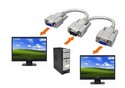 | 2 Monitor to 1 PC VGA Splitter Cable    ·         With this VGA Y Splitter Cable you can share video easily and is perfect for presentations. It splits the (S) VGA signal providing simultaneous display of the same picture. ·         The VGA Splitter Cable makes connecting two monitors a snap! ·         VGA Cable works with any two VGA/SVGA type monitors that use standard 15 pin plugs. ·         One male (15 pin) plug for the computer and two female (15 pin) for the monitors. ·         Standard 3-row, 15 contact HD15 VGA plugs. ·         This VGA Splitter Adapter has foil shielding to prevent signal loss, screen ghosting and loss of color. ·         Weight: 97g. |