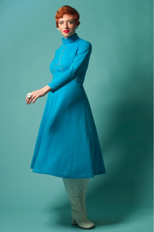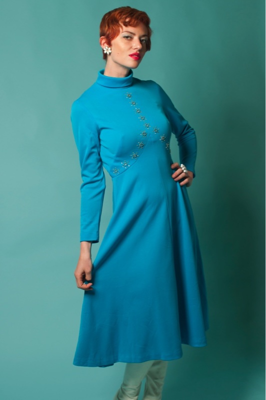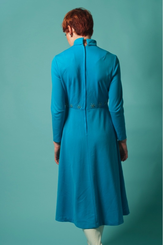 turtle neckline with long sleeves. Back zipper. The most beautiful
