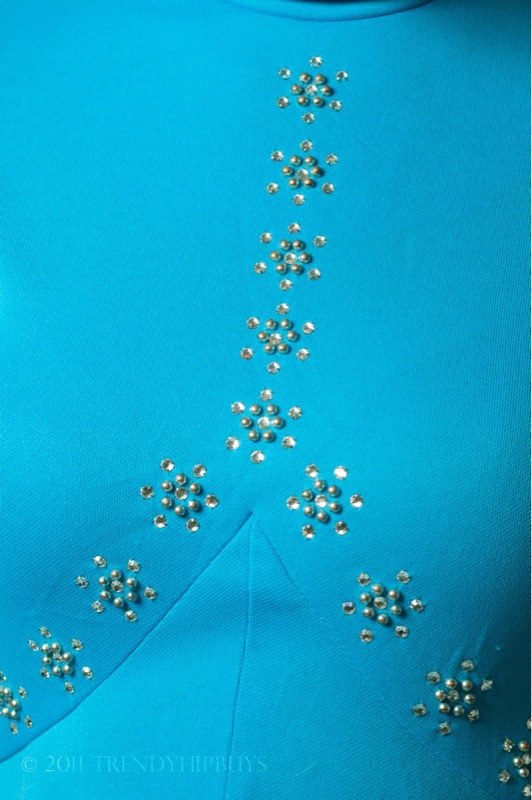 flower pattern embedded rhinestone below collar and along the empire