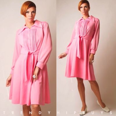 Bat Wing Collar with front zipper. Very unique vertical pleated Top. Long cuff sleeves. Adorable belt to tie at waistline. Very Twiggy in beautiful bubble gum Pink! Great for the office, any fun parties, even a wedding! Super Classic and CHIC! WOW!!! You won't find this at the mall!