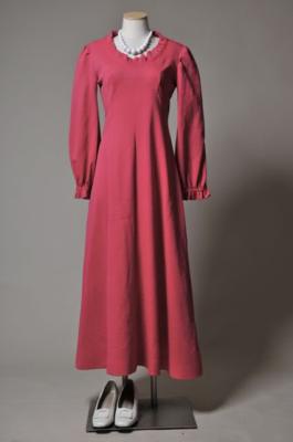 Description:Pretty ruffle jewel neckline with loose elastic cuff sleeves with ruffles. High empire waistline. Long beautiful A-line skirt. Vivid Fushia Pink color! Zipper in the back. You cannot find this at the mall at this price :)! *Accessories not included unless mentioned