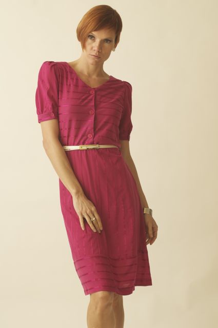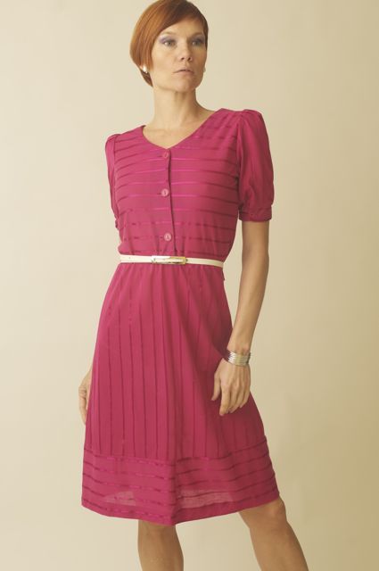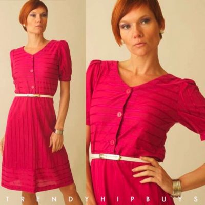 Jewel neckline with front buttons. Puff sleeves. A-line mini skirt. This is a slip-on dress. Super adorable pink color! Great with heels, espadrilles or boots. Perfect for any fun occasion or even the office! WOW! ;)