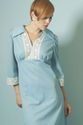 •Shirt wing collar with slit and floral lace. 3/4 sleeves with lae cuffs. Empire Waistline.