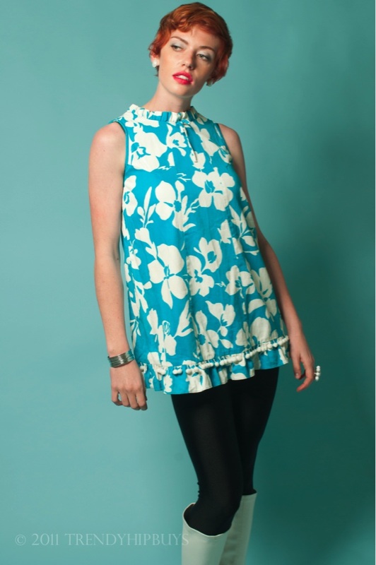 Ruffle neckline with small bow to tie at neckline. Sleeveless. Tent style bodice with mini flounce hemline and mini dangling pom pom detailing. Super unique and cute. Perfect with white pants or skinny Jeans for the upcoming Summer or Spring!!! WOWW! :)))
