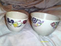 Item 3 is 3 bowls one approx 4" in diamter and has a picture of a bird on the front ,secont is a deep dish approx 4" and a small one 3" both have the flower patten on the front