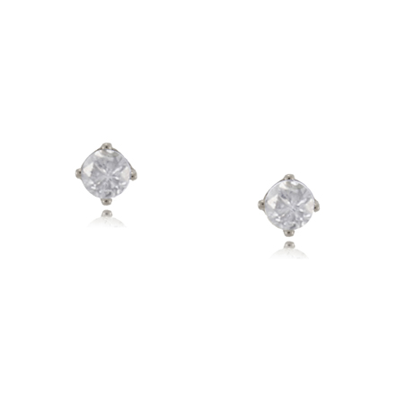 Round Diamond Stud Earrings 14K White Gold Ladies Post