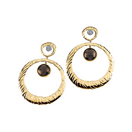 These smoky quartz and diamond earring put on a lavish display of design and sparkle. Expertly crafted in 14k yellow gold/white gold, these divine smoky quartz earrings feature post with butterfly backings that offer both comfort and security when worn. A round shaped smoky quartz stone sparkles in its bezel setting and gives this grand pair of smoky quartz earrings some stand-out sparkle. Feel pleasing everywhere you go when youre wearing these smoky quartz and diamond earring in 14k yellow gold/white gold.