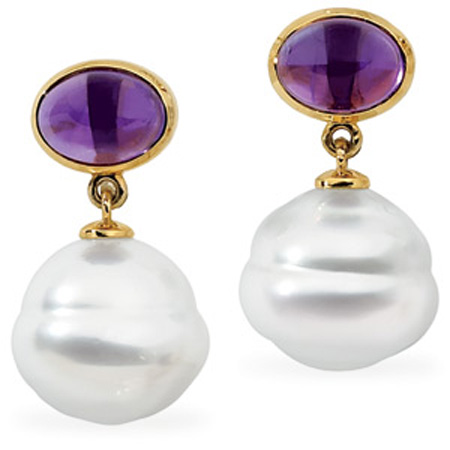 South Sea Pearl dangle earrings with purple amethyst