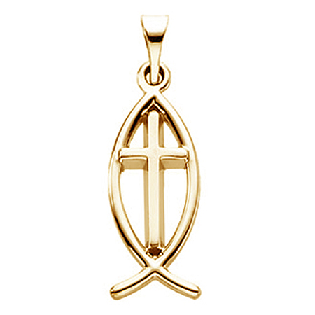14K Yellow Gold Ichthys Fish And Cross Pendant - 14mm
