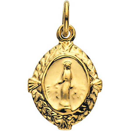 This attractive miraculous medal will be cherished for a lifetime. Worn as a symbol of hope and faith for many religious follower, this miraculous medal is made of 14k yellow gold and measures approximately 9 x 12mm. This miraculous medal in 14k yellow gold is a jewelry box essential for any devout Christian and comes with a prayerful design that is simply number one.