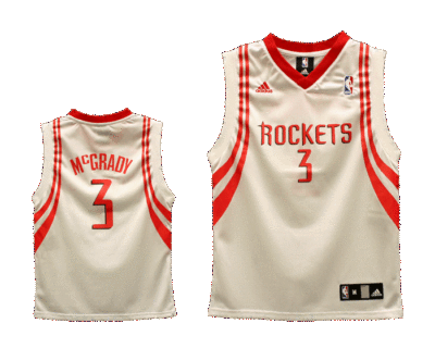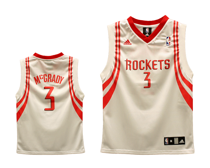 He will cheer for his favorite player McGrady #3 with this official jersey available in color white. jersey includes a V-neck ROCKETS 3 at center of chest and also on back side. Official NBA logo embroidery at left chest side and right side ADIDAS logo. Exterior 100% Nylon; Knit Trim Polyester