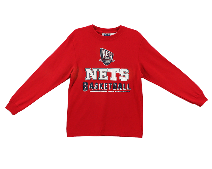 New Jersey NETS long sleeve shirt had a round crew neck for comfort, Nets primary logo printed and NETS BASKETBALL . 100% Cotton Made in El Salvador