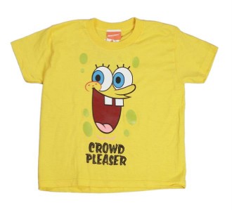 Nickelodeon Spongebob Squarepants T-Shirt. This Spongebob Squarepants t-shirt has a full color glow in the dark screen print featuring Bobs face with "CROWD PLEASER" slogan. 100% Cotton made in Mexico