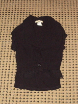 Condition: Very very good. No rips, stains or holes. Very little wear. Looks cute with a tank top underneath! It is hard to see in the picture but it does have lace around it, just under the buttons.