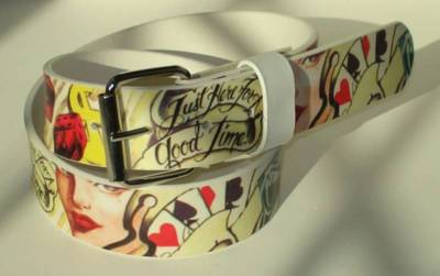GOTH PUNK GRAPHIC ART PRINT PRINTED LEATHER SNAP-ON BELT