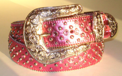 WESTERN RHINESTONE PINK LEATHER BELT CRYSTAL BUCKLE L