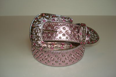 WESTERN RHINESTONE PINK LEATHER BELT CRYSTAL BUCKLE M