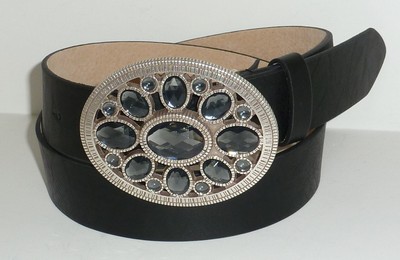 WOMEN DESIGNER BRAND BLACK LEATHER DRESS BELT WITH RHINESTONE BUCKLE