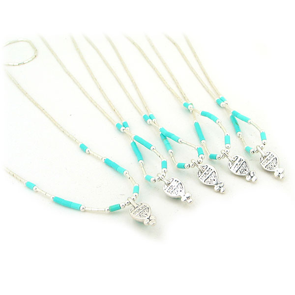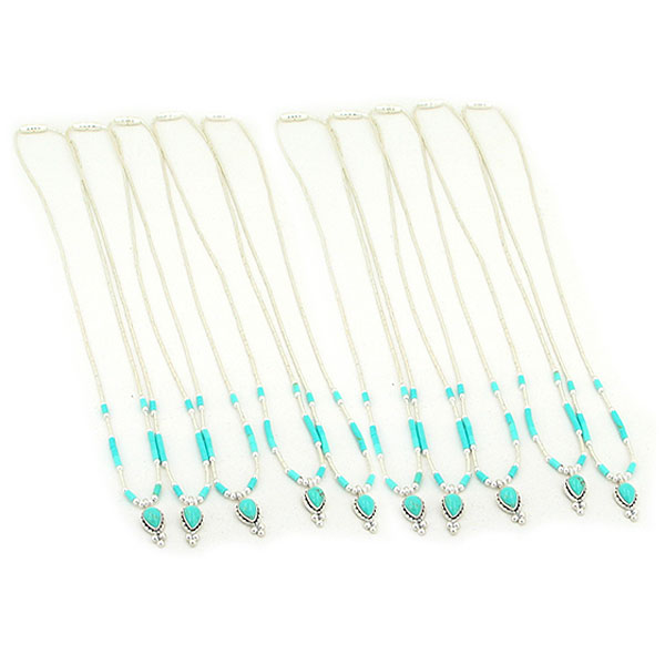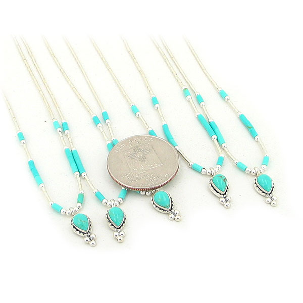 Featuring a wholesale set of 10 liquid sterling silver necklaces with genuine turquoise stones.
