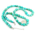 Featuring an extra long 33.5" genuine turquoise necklace with randomly strung beads that range from 7mm to 13mm.