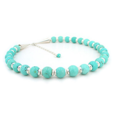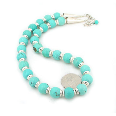 Featuring a a gorgeous 12mm genuine turquoise bead necklace with our classic silver cup findings.
