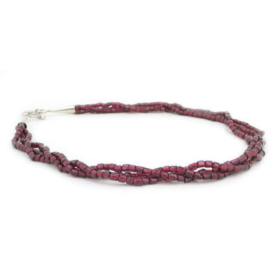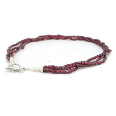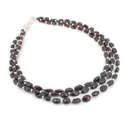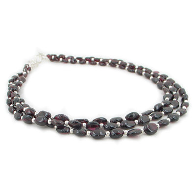 Featuring a beautiful 3 strand garnet nugget necklace with sterling silver beads and clasp.