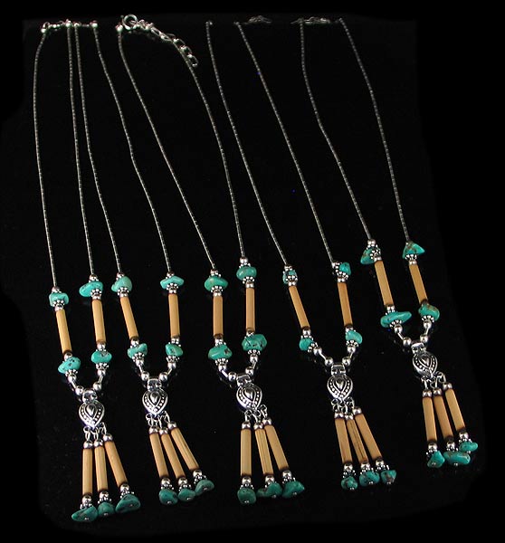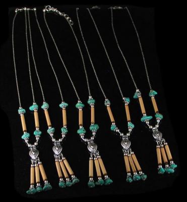 5 pc Wholesale Liquid Silver Turquoise Wood Necklaces