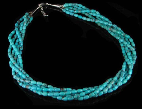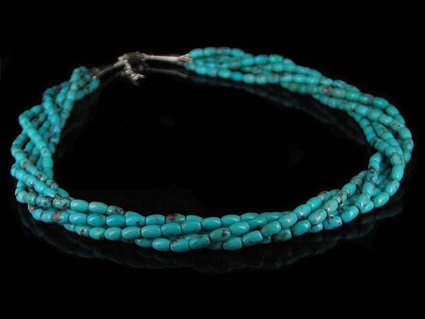 Additional Info: This necklace features gorgeous Turquoise Mountain turquoise beads with natural pyrite deposits.
