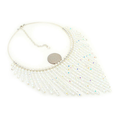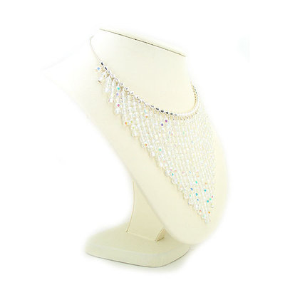 Featuring a gorgeous handstrung sterling silver wire necklace with graduated White Austrian Crystal drops.