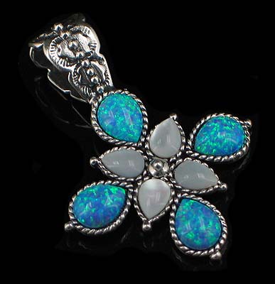 Stone: Created Blue Fire Opal, Mother of Pearl