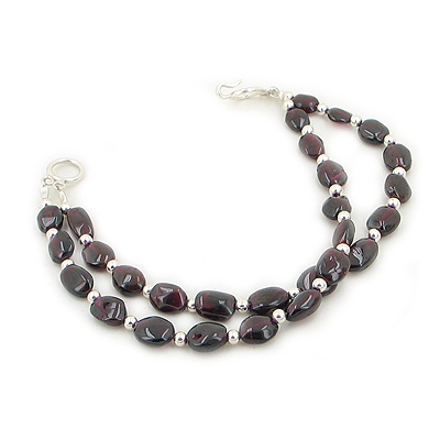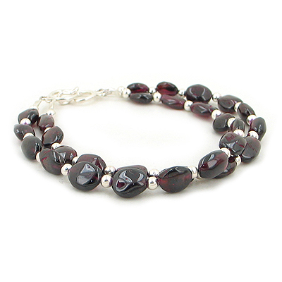 Featuring a double strand genuine garnet nugget necklace with sterling silver beads.