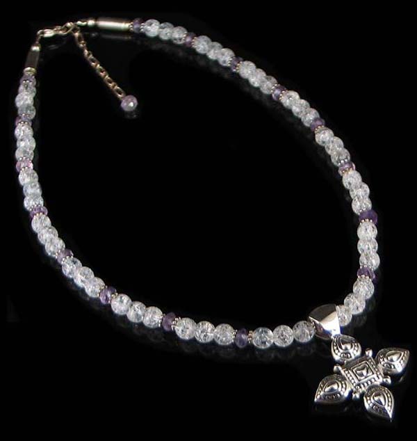 Faceted Amethyst Snow Crystal Sterling Silver Necklace