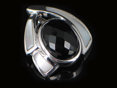 Item Description: Beautiful designer cut faceted onyx set in .925 sterling silver pendant. Complementing the onyx stone are beautiful mother of pearl inlays. For more details please, see box above our company logo.
