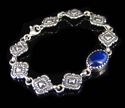 Genuine Lapis Sterling SilverConcha Link Bracelet